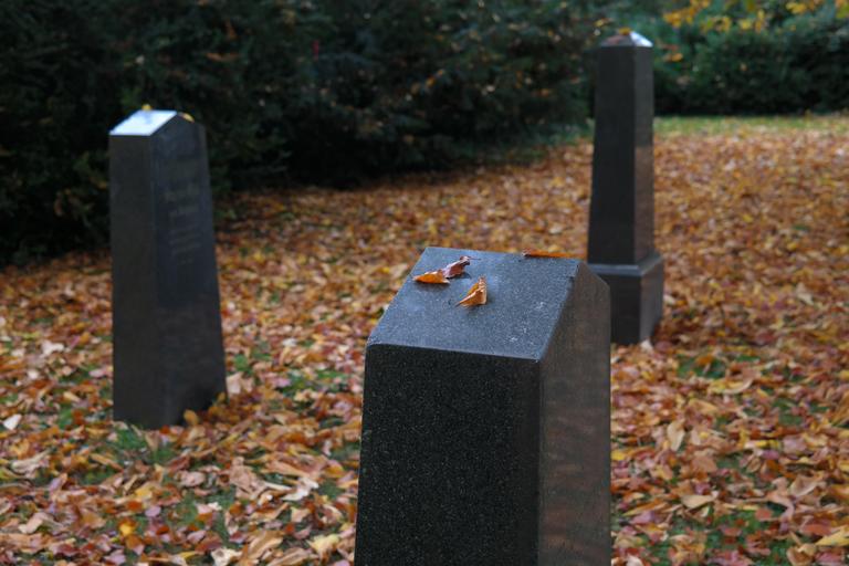 Keywords: grave stones graves old cemetery ulm cemetery black columnar autumn leaves
