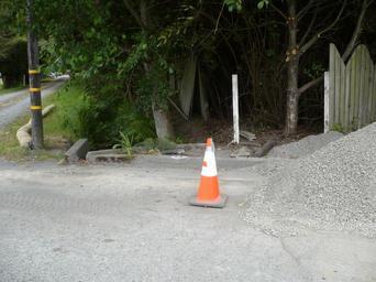 Keywords: GravelByStream.jpg en A pile of gravel a construction cone and the curb cut which leads to a minor stream in Ferndale California Notice the lack of sediment control or pedestrian rerouting Notice that a silt catcher has been put on the east side of the stream but nothing restrains the pile of gravel from going straight into the stream through the curb cut This is part of the Rose Avenue sidewalk restoration project own Ellin Beltz 2014-06-02 Ferndale California Sediment controlsPhotographs by Ellin Beltz |