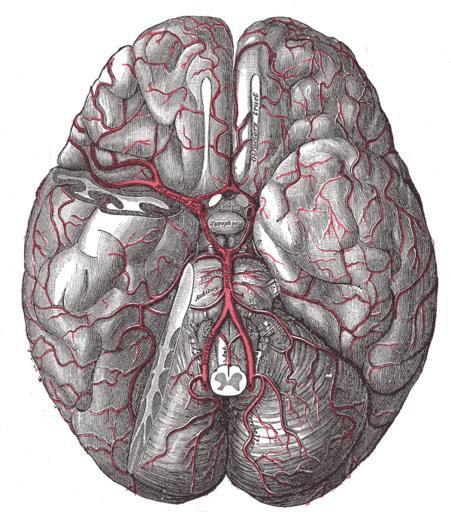 | Keywords: Gray516.png en The arteries of the base of the brain The tempora pole of the cerebrum and a portion of the cerebellar hemisphere have been removed on the right side de Circulus arteriosus des Menschen Der Temporallappen und ein Teil der Kleinhirnhemisphäre wurden auf der rechten Seite entfernt <br> 1 Arteria cerebri anterior 2 Arteria cerebri media 3 Zufluss der Arteria carotis interna auf der rechten Seite vom Schläfenlapppen verdeckt 4 Arteria cerebri posterior 5 Arteria basilaris Zufluss fr Polygone de Willis chez l'Homme Other fields 1 Information field Ucfirst Plate 516 before 1858 Henry Gray Anatomy of the Human Body See Book section below 516 Creator Henry Vandyke Carter Book Gray's Anatomy PD-old-100-1923 Gray's Anatomy plates 0516 Neuroanatomy Arteria cerebri anterior Arteria cerebri media Arteria carotis interna Arteria cerebri posterior Arteria basilaris Arteria cerebri communicans posterior Pituitary gland Olfactory tract |
