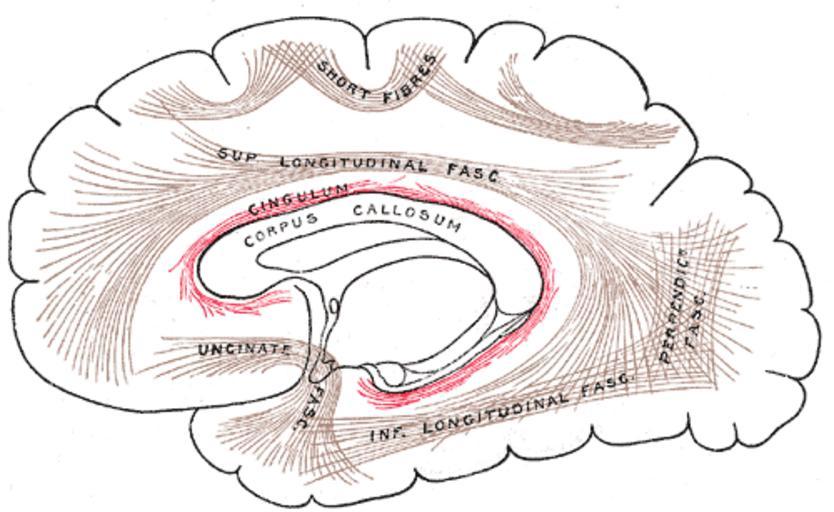 Keywords: Gray751 Cingulum.png Cingulum Association fiber around corpus callosum in brain File Gray751 png 2009-11-14 Gray colour changed by was_a_bee thumb left 100px original White matter Cingulum brain