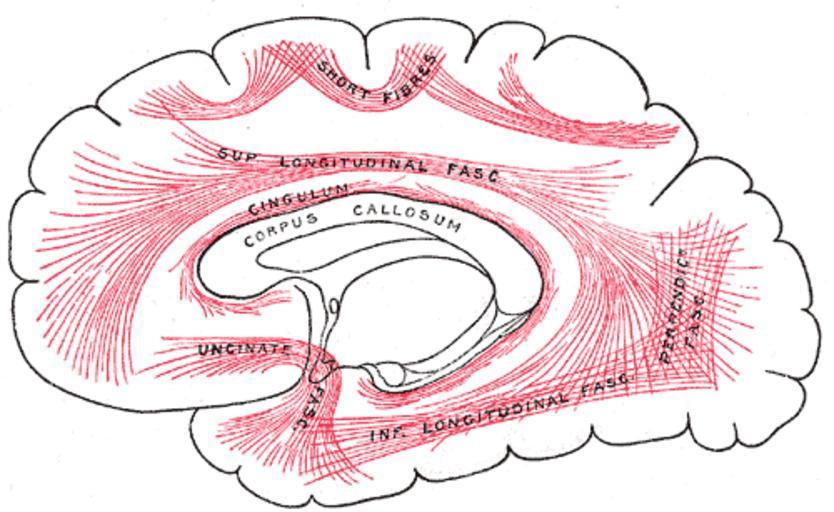| Keywords: Gray751.png Diagram showing principal systems of association fibers in the cerebrum Other fields 1 Information field Ucfirst Plate 751 before 1858 Henry Gray Anatomy of the Human Body See Book section below 751 Creator Henry Vandyke Carter Book Gray's Anatomy PD-old-100-1923 Gray's Anatomy plates 0751 Neuroanatomy Human brain sagittal section White matter Cingulum brain Inferior longitudinal fasciculus Association fibers Superior longitudinal fasciculus Uncinate fasciculus | ||||