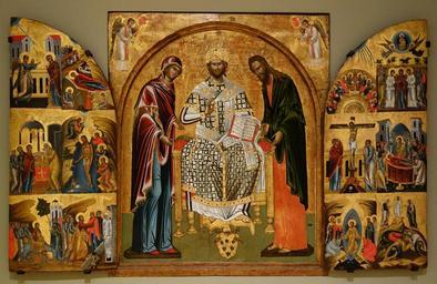 Keywords: Great Deesis with the Twelve Feasts of the Church, Greco-Byzantine, c. 1540-1549, tempera and gilt on panel - Chazen Museum of Art - DSC01943.JPG en Exhibit in the Chazen Museum of Art University of Wisconsin-Madison Madison Wisconsin USA This artwork is old enough so that it is in the public domain Photography was permitted in the museum without restriction 2013-07-21 13 14 38 own Daderot cc-zero Uploaded with UploadWizard Art of Europe in the Chazen Museum of Art Icons of Deesis
