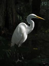 Keywords: great egret waterfowl bird large heron wetlands all white plumage casmerodius albus enclosure zoo portrait looking standing