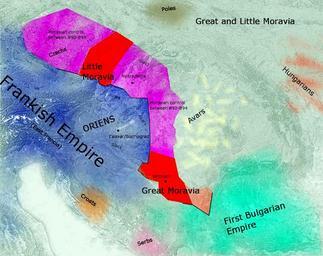 Keywords: Great Moravia Puspoki's Theory.jpg en Carpathian Basin before the Hungarian conquest According to Peter Nagy Puspoki's theory own Fakirbakir Source is a public domain map http //commons wikimedia org/wiki/File Europe_satellite_image_location_map jpg Items derive from http //www tankonyvtar hu/site/img/historia/1986_86-01_08_Puspoki1_original jpg Peter Püspöki Nagy a Slovak historian who proposed in his study initially published in 1978 and later in 1982 existence of two Moravias based on the sources of De administrando imperio DAI and Bavarian Geographer The latter source distinguishes between Marharii identified by Nagy as neighbors of Bohemians and Marehanii who bordered on the Bulgars farther to the southeast Maps of the Hungarian prehistory Maps of the history of Slovakia Maps of the history of the Czech Republic Maps of the history of Serbia in the Early Middle Ages Maps of the history of Vojvodina Maps showing 9th-century history Maps showing history of the Early Middle Ages Maps of Great Moravia Maps of the Frankish territory Maps of the history of Central Europe Romania in the 9th century Maps of the history of Romania in the Middle Ages |
