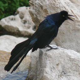 Keywords: Great-tailed Grackle-27527.jpg A Great-tailed Grackle Quiscalus mexicanus perched on a rock making the loud abrasive call for which these birds are notorious <br>Photo taken with a Panasonic Lumix DMC-FZ50 on the island of Cozumel in Quintana Roo Mexico http //www kenthomas us KenThomas us<br> personal website of photographer 2008-02-04 09 19-06 <sup>ISO 8601</sup> Ken Thomas This image is released to the public domain and therefore no permission or credit is required <br> Comments and/or feedback however are always welcome See my user page for contact info Quiscalus mexicanus Taken with Panasonic Lumix DMC-FZ50 |