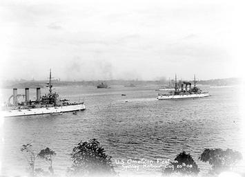 Keywords: archives state records nsw staterecordsnsw newsouthwales blackandwhite great white fleet greatwhitefleet american fleet americanfleet us navy usnavy peace mission peacemission battleship monochrome sea outdoor black and white The US Navy's Great White Fleet in Sydney Harbour. Glass Plate Negatives Dated: c. 20 August 1908 Digital ID: 18526_a024_000011 Rights: www.records.nsw.gov.au/about-us/rights-and-permissions We'd love to hear from you if you use our photos. » See more images and records relating to the US Fleet visit on our website Many other photos in our collection are available to view and browse on our website using Photo Investigator. The US Navy's Great White Fleet in Sydney Harbour. Glass Plate Negatives Dated: c. 20 August 1908 Digital ID: 18526_a024_000011 Rights: www.records.nsw.gov.au/about-us/rights-and-permissions We'd love to hear from you if you use our photos. ยป See more images and records relating to the US Fleet visit on our website Many other photos in our collection are available to view and browse on our website using Photo Investigator. |