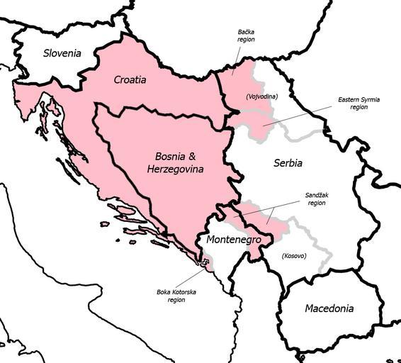 Keywords: Greater Croatia 01.png Fixed some detail used overlaid Sandzak Backa Syrmium regions so it's much more accurate now Pink coloring denotes regions claimed by Greater Croatian proponents Current country borders are black regional borders only those that are relevant to the article are grey Comment Map is still wrong Croatian-Slovenian border in Istria is 20 kilometars southern that it should be Umag and Savudrija are in Croatia hej And borders of eastern Srijem are not correct Zemun and Novi Beograd are part of Srijem too I fixed the Istria issue but keep in mind that this map is just a general illustration of the point in question nothing more Also I don't think Belgrade region was ever claimed as a part of Greater Croatia although anything is possible I guess so I left it out --Dr Gonzo 10 52 13 March 2007 UTC My map at home has Croatia and Italy touching so the Greater Croatia map on this page needs to cover a slice of Slovenia for that to be happening The rest of the map is proportionate to the one I have Plus doesn't it seem odd to anyone that on this map is no Slovenian territory claimed en wikipedia 2006-05-24 Dr Gonzo wikipedia en Dr Gonzo original upload log page en wikipedia Greater_Croatia_01 png 2007-03-13 10 42 Dr Gonzo 1151×1041×8 156832 bytes <nowiki>Fixed the Istria border sorry for that the blank map I used already had that mistake </nowiki> 2006-05-24 22 25 Dr Gonzo 1151×1041×8 154088 bytes <nowiki>Fixed some detail used overlayed Sandzak Backa Syrmium regions so it's much more accurate now </nowiki> 2006-05-24 19 10 Dr Gonzo 1151×1041×8 153078 bytes <nowiki>First version self made Some minor geographical detail may be incorrect Pink coloring denotes regions claimed by Greater Croatian proponents </nowiki> Maps of the history of Croatia by theme Maps of proposed countries Greater Croatia |