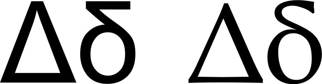 Keywords: Greek alphabet delta.svg Uppercase and lowercase versions of the Delta character from the Greek alphabet in a sans serif and serif font at 72pt DarkEvil 2006-12-01 DarkEvil Greek uppercase and lowercase letters Serif+sans Greek letters Delta letter |