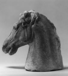 | Keywords: Greek - Head of a Horse - Walters 23173 - Left.jpg This lively horse protome forepart was found near the temple of Artemis the patron deity of Sardis in ancient Lydia in present-day Turkey It is elaborately executed with relief details of the reins a naturalistic modeling of the mane and a highly expressive quality that would have been even more impressive had its colors been preserved The horse would have stood by the side of a statue of either Castor or Pollux known as the Dioscuri sons of Zeus serving as his attribute Horses were highly valued in antiquity Alexander the Great often represented as another Dioscurus honored Bucephalus the horse that helped him conquer the world by founding a city in its name century 3 2 BC Hellenistic marble cm 35 1 34 3 13 accession number 23 173 20676 From the pyramids Henry Walters city Baltimore Walters Art Museum Henry Walters Acquired by Henry Walters 1929 From Alexander to Cleopatra Greek Art of the Hellenistic Age The Walters Art Gallery Baltimore 1988-1989 Sport in Ancient Greece Palais des beaux-arts Brussels Belgium Brussels 1992 place of origin Sardis in present-day Turkey Walters Art Museum license Ancient Greek sculptures in the Walters Art Museum Art from Greece Media contributed by the Walters Art Museum needs category review |