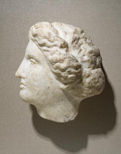 | Keywords: Greek - Head of a Woman - Walters 23220.jpg In the first decades of the 4th century artists further refined the representation of facial features the eyes became more deeply set the lower eyelid almost disappeared and the lips and chin became more delicate The serene expression the triangular shape of the forehead and the loosely carved locks of hair on this statue typify the 4th-century variations on the Classical ideal The head is from a grave monument and paint would have softened the roughened surface of the hair between 390 375 BC Classical marble cm 13 5 9 6 12 2 accession number 23 220 26049 Ludwig and Renata Edelstein date and mode of acquisition unknown Walters Art Museum Henry Walters Bequest of Ludwig and Renata Edelstein 1965 In Search of Ancient Treasure 40 Years of Collecting The Walters Art Gallery Baltimore 1978 From Alexander to Cleopatra Greek Art of the Hellenistic Age The Walters Art Gallery Baltimore 1988-1989 Pandora's Box Women in Classical Greece The Walters Art Gallery Baltimore; Dallas Museum of Art Dallas; Antikenmuseum Basel und Sammlung Ludwig Basel 1995-1996 place of origin Athens Greece Walters Art Museum license Ancient Greek sculptures in the Walters Art Museum Art from Greece Media contributed by the Walters Art Museum needs category review |