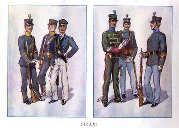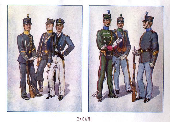 Keywords: Greek military schools cadets, ca. 1900.jpg en Cadets of the Greek military academies ca 1900 Left panel two cadets of the Army Academy and a student of the Naval Academy Right panel students of the NCO academy Ελλ Στρατός Εκδ Αφών Γ Ασ ιώτη Κέρκυρα Panos Aravantinos 1886-1930 ~ 1910 <gallery>File Greek Army medical corps uniforms ca 1900 jpg Previous image</gallery> PD-old-80 Military uniforms of Greece Lithographs of Greece Kepis Panos Aravantinos Hellenic Army Academy |