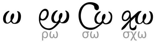 Keywords: Greek minuscule Omega with ligatures.svg en Samples of ligatures involving Greek letter Omega in medieval minuscule handwriting and early modern printing own based on glyphs in the Rgreekl2 font made by Vernon Kooy http //schmidhauser us/tools/rgl/rgreekl2 pdf Fut Perf 2010-08-14 Omega letter Greek ligatures ω |