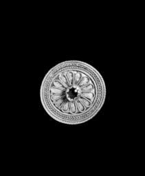 Keywords: Greek - Rosette - Walters 57603.jpg A round sheet with circles of twisted braided and smooth wire forming the border; and a fourteen-petaled filigree palmette with a garnet center in a serrated box setting On the back a ribbed tube for threading onto the chain of a necklace or diadem century 3 1 BC Hellenistic gold garnet cm 0 6 1 7 d x diam accession number 57 603 21305 Henry Walters Baltimore date and mode of acquisition unknown Walters Art Museum Henry Walters Acquired by Henry Walters Jewelry - Ancient to Modern The Walters Art Gallery Baltimore 1979-1980 place of origin Greece Walters Art Museum license Ancient Greek art in the Walters Art Museum Jewellery in the Walters Art Museum Art from Greece Media contributed by the Walters Art Museum needs category review |