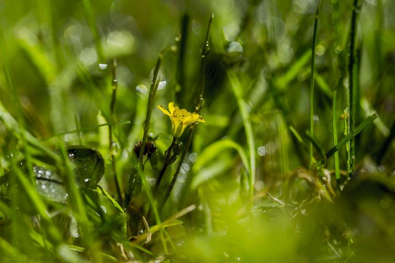 Keywords: green grass yellow flower nature plant green grass environment ecology spring lawn garden earth life natural dew water droplet
