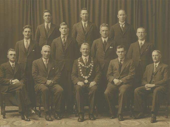 Keywords: green island greenisland dunedin historic municipal groupshot people monochrome DCC Archives, Green Island Borough Series, 22/3/10 Back Row: V Pringle, E Hopewell, JC Russell Second Row: W Dickinson, A McGregor, TG Tomkins, JAR Brown Front Row: WO Smellie, GA Orange, T McAhan (Mayor), AL Burk (Town Clerk), FJ Williams (Engineer) DCC Archives, Green Island Borough Series, 22/3/10 Back Row: V Pringle, E Hopewell, JC Russell Second Row: W Dickinson, A McGregor, TG Tomkins, JAR Brown Front Row: WO Smellie, GA Orange, T McAhan (Mayor), AL Burk (Town Clerk), FJ Williams (Engineer) |