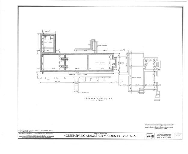| Keywords: Green Spring Plantation survey after 1933.jpg LargeImage Survey of Green Spring Plantation in according to source Prints and Photographs Online Catalog PPOC of the Library of Congress http //hdl loc gov/loc pnp/hhh va0615 > 1933 Historic American Buildings Survey PD-USGov-Interior-HABS History of Virginia National Register of Historic Places in James City County Virginia Plantations in the United States Houses on the National Register of Historic Places in Virginia Floor plans of houses Floor plans Plantation houses in Virginia Colonial National Historical Park |