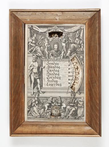 Keywords: Gregoriansk kalendarium med veckodagar, datum, månader och stjärntecken - Skoklosters slott - 93146.tif Karl XI av Sverige plain text sv Sign G Valentin del I G Böcklin sculp Lipsia Böcklin verksam i Leipzig 1685-1709 Främre träskiva med påklistrat kopparstick med tre luckor bakom vilka är placerades tre rullar för årsdatum - samt månadsangivelser Rullarna röres med hjälp aav tre klossar på baksidan Kopparsticket visar överst i mitten Karl XI s porträtt bröstbild i medaljong hållen av två änglar Karl XI död Över porträttet lucka för årtalen 1735-1741 skrivna Under porträttet dagarnas benämningar obs Lögerdag med till höger varje dags planettecken Till höger därom luckan för datumrullbandet med skrivna siffror bandet går ej att rubba Bakom denna öppning skymtar döden - skelett med lie <br/>Till vänster om dagarnas benämningar står livet en naken man hållande ett litet barn Nedtill öppningen för månadsrullen vilken visar varje månads namn antal dagar zodiaktecken samt sista dagens längd I stickets fyra hörn är de fyra årstiderna framställda i symbolisk form <br/>Stödplatta på baksidan Profilerad ram av valnöt fanerad på fur bredd 52 mm original caption Gregoriansk kalendarium med veckodagar datum månader och stjärntecken <br/> Nyckelord Tidmätning Tidräkning Kalender Almenacka Datum Veckan Föremålsbild Veckodagar ca 1700 size mm 202 325 SKO place of origin original filename sm_dig5607 31762 inventory number SKO 10680 93146 CC-BY-SA Fredrik Andersson Almanacs Time Fredrik Andersson Media contributed by LSH unmatched creator Media contributed by LSH unmatched keyword Media contributed by LSH 2014-11 |