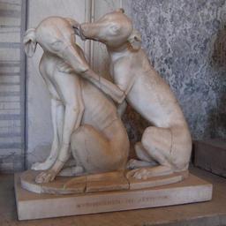 | Keywords: Greyhounds playing, Vatican.jpg Group of greyhounds playing 2nd C BCE marble Museum musei Vaticani Museo Pio-Clementino Sala degli Animali An almost identical statue found at the same time and place is in the British Museum part of the Townley Collection object history from Monte Cagnolo near Lanuvio discovered 1774 accession number Inv 430 PD-old-100-1923 Photo Henry Townsend Museo Pio-Clementino - Sala degli animali Ancient Roman statues in the Vatican Museums Animals 2nd-century statues in the Vatican Museums Dogs in ancient Roman art Greyhounds in art in antiquity Sculptures of greyhounds Greyhounds in art alone Townley Collection Statues of animals in Rome dog |