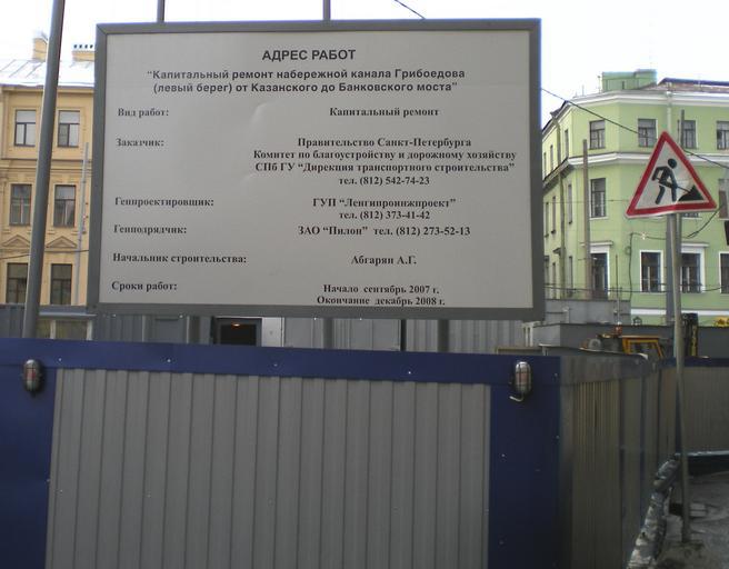 Keywords: Griboyedov Canal - closed during restorations.JPG Ремонт канала Ð“Ñ Ð¸Ð±Ð¾ÐµÐ´Ð¾Ð²Ð° own 2008 user AndreyA Griboedov Canal Embankment Bank Bridge Kazansky Bridge Canal restoration in Russia February 2008 in Saint Petersburg