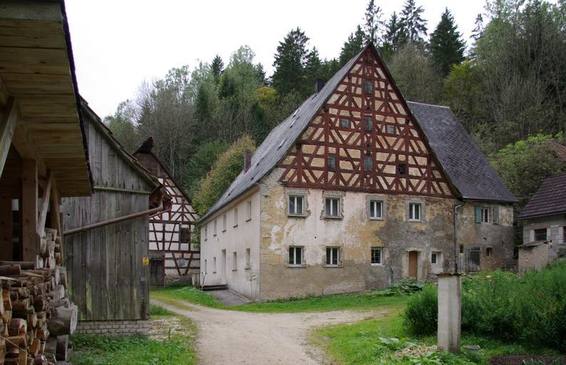 Keywords: Griesmuehle 001.JPG Hartenstein wurde bereits 976 als molendinum Gries urkundlich erwähnt als Wiltrud von Bergen dem K1oster Bergen bei Neuburg an der Donau einige Güter schenkte own Janericloebe 2010-09 Griesmühle Hartenstein Timber framing in Hartenstein Bavaria |