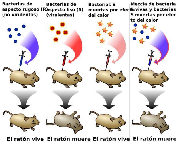 Keywords: Griffith experiment-es.svg es El experimento de Griffith 2014-04-13 13 19 20 File Griffith experiment svg Madeleine Versión en español de Alejandro Porto cc-zero Uploaded with UploadWizard Genetics