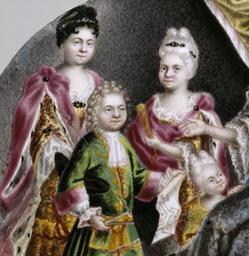 Keywords: Grigorii Semenovich Musikiiskii - Portrait Medallion of Peter the Great and Family - Walters 44326 - detail.jpg This medallion is dated and signed on the back by Gregory Musikiiskii the first Russian painter of portrait miniatures It can be compared to an earlier enamel painting of Peter the Great with his family now in the Hermitage Museum Saint Petersburg executed by the same artists in 1717 Here the Russian emperor is depicted together with his wife Catherine his three daughters Anna Elizabeth the future empress and Natalia and his grandson Peter the future Peter II Musikiiskii was transferred from the Moscow Kremlin Armory to St Petersburg to work for the court of Peter the Great the founder of modern Russia ca 1720 Modern technique painted enamel copper cm 8 1 10 7 accession number 44 326 21423 Alexandre Polovtsoff Aleksandr Aleksandrovich Polovtsov Saint Petersburg and Paris by purchase Henry Walters city Baltimore Walters Art Museum Henry Walters Acquired by Henry Walters 1930 Russian Art Icons and Decorative Arts from the Origin to the Twentieth Century The Walters Art Gallery Baltimore 1959-1960 A Millennium of Christianity Russian Art from The Walters Art Gallery The Walters Art Gallery Baltimore 1988-1989 Russian Enamels The Walters Art Gallery Baltimore 1996-1997 place of origin St Petersburg Russia Walters Art Museum license 2D ImageNote 1 706 689 117 151 1800 1528 2 Natalia ImageNoteEnd 1 Grigory Musikiysky 1720s portrait miniatures of Russia Portrait miniatures in the Walters Art Museum Family portraits of Russian rulers Family of Peter I of Russia Anna Petrovna of Russia Portraits of Elizabeth of Russia as a child Peter II of Russia in portrait miniatures 1721 Natalia Petrovna Elizabeth of Russia in portrait miniatures |