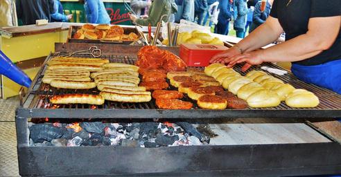 Keywords: grill folk festival grilling bratwurst heat stainless embers charcoal grilled meats eat