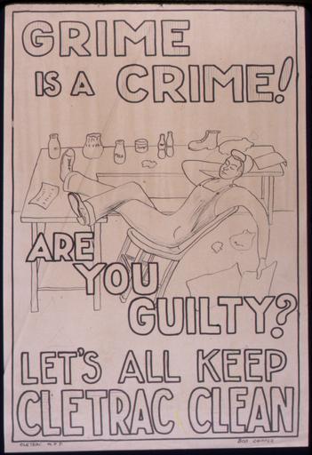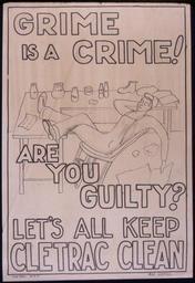 Keywords: Grime is a crime^ Are you guilty^ Let's all keep Cletrac clean. - NARA - 535288.jpg Scope and content General notes 535288 Local identifier 179-WP-1438 Office for Emergency Management War Production Board 01/1942 - 11/03/1945 Still Picture Records Section Special Media Archives Services Division NWCS-S National Archives at College Park 8601 Adelphi Road College Park MD 20740-6001 other date circa 1942 1943 Record group Record Group 179 Records of the War Production Board 1918 - 1947 Record group ARC 508 War Production Board compiled 1942 - 1943 Series ARC 533858 File unit File unit ARC Variant control numbers NAIL Control Number NWDNS-179-WP-1438 Other versions <gallery> File Grime_is_a_crime _Are_you_guilty _Let's_all_keep_Cletrac_clean _-_NARA_-_535288 tif tif File Grime_is_a_crime _Are_you_guilty _Let's_all_keep_Cletrac_clean _-_NARA_-_535288 jpg jpg </gallery> NARA-cooperation PD-USGov World War II safety posters from the United States |