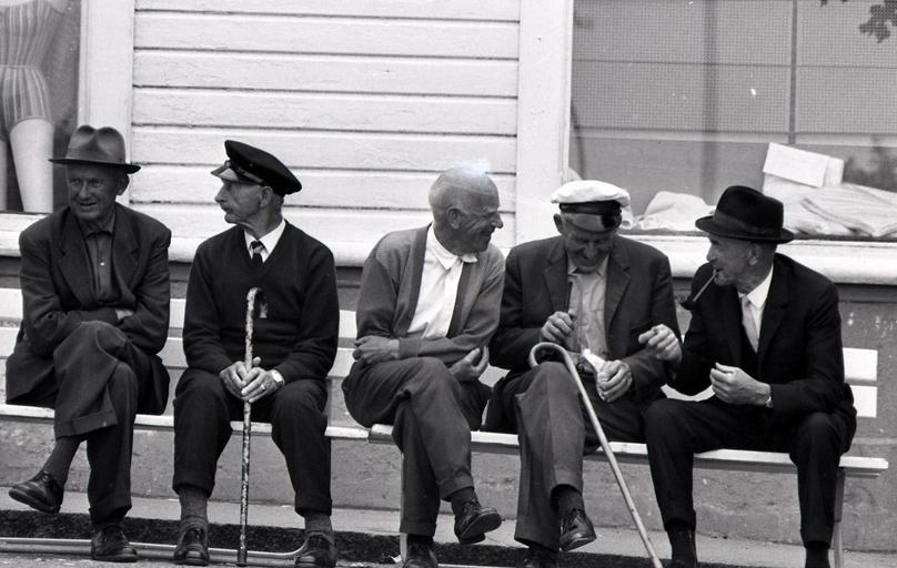 Keywords: people blackandwhite black and white Fem menn som har levd lenge; liv fulle av opplevelser, erfaringer og tanker. En julidag i 1967 sitter de sammen på en benk i Grimstad. Kanskje prater de om gamle dager? Øyeblikket ble fanget av Billedbladet NÅs fotograf i forbindelse med en sommerreportasje fra sørlandsbyen. Foto: Billedbladet NÅ (PA-0797_4395_001_004). Publisert som en del av prosjektet #arkivsommer sommeren 2014. Fem menn som har levd lenge; liv fulle av opplevelser, erfaringer og tanker. En julidag i 1967 sitter de sammen på en benk i Grimstad. Kanskje prater de om gamle dager? Øyeblikket ble fanget av Billedbladet NÅs fotograf i forbindelse med en sommerreportasje fra sørlandsbyen. Foto: Billedbladet NÅ (PA-0797_4395_001_004). Publisert som en del av prosjektet #arkivsommer sommeren 2014. |