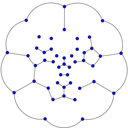 Keywords: Grinberg 5CEC Nonhamiltonian graph.svg planar graph that can be shown not to have any Hamiltonian cycles using Grinberg's theorem Unlike the Tutte graph this graph has cyclic edge connectivity five meaning that it is necessary to delete at least five edges in order to split the graph into subgraphs at least two of which contain cycles own David Eppstein 2012-04-06 Undirected planar graphs Files by User David Eppstein from en wikipedia Cc-zero