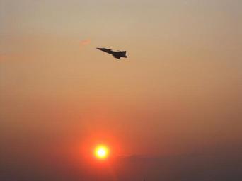 Keywords: gripen air display sunset sun glow halo orange sky aerial aviation jet speed military