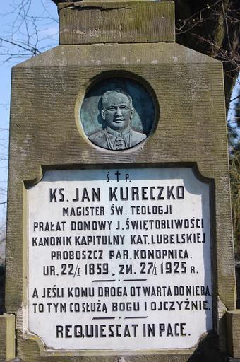 Keywords: Grobkskureczkitablica.JPG Tablica nagrobna grób ks Jana Kureczki own 2008 Archeo16 Cmentarz w Konopnicy
