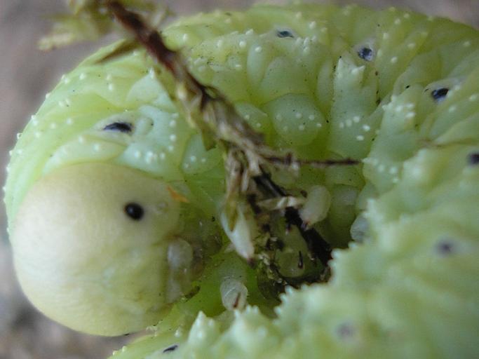 | Keywords: Groene rups 4-5cm opgerold.jpg thumb right same animal - walking other picture near rest area Lucasgat on the dutch A1 motorway in an area that has lots of oak and pine-like trees and maybe some birch too It rolled up when the camera came too close and clutched a little twig of the moss it was walking on I ripped the twig out of the ground and photgraphed the head upclose from the bottom protected side The little leggs clutching the twig are also nicely visible As I know nothing about these critters I looked and asked around and it seems this would be the larva of a Birch Sawfly Cimbex femoratus Update According to Doc Taxon it is a Cimbex femoratus larva Doc Taxon states that for other species with very similar larva Cimbex lutea and Cimbex fagi the warts would be smaller and more cone-shaped as oposed to the larger and more Zuckerhut -shaped warts on the C femortaus <small>The German word Zuckerhut refers to a suger cone with fairly steep sides and a clearly rounded tip used in the preparation of Feuerzangenbowle See Wikipedia English or German </small> As a reference for this the following book is quoted H Lorenz M Kraus Die Larvalsystematik der Blattwespen Tenthredinoidea und Megalodontoidea in Nr 1 Abhandlungen zur Larvalsystematik der Insekten Akademie-Verlag Berlin 1957 Please feel free to edit this page and add more identification info or other comments Birch Sawfly Larva Cimbex femoratus - rolled up and clutching a twig <br /> Location Motorway rest area Lucasgat near Apeldoorn Netherlands <br /> Keywords wildlife nature insect symphyta woods woodland birch sawfly summer green larvae caterpillar grub Larve van een Berkenknotssprietbladwesp of kortweg Berkenknopwesp Cimbex femoratus - opgerold en houdt zich vast aan een twijgje mos <br /> Locatie Parkeerplaats Lucasgat langs de A1 bij Apeldoorn NL <br /> Trefwoorden larve berk wesp rups groen Larve der Grosse Birkenknopfhornblattwespe - aufgerollt und hällt sich fest an einen Zweig Moos own 2006-07-29 Pudding4brains P4bFnF Cimbex femoratus Tenthredinoidea heads |