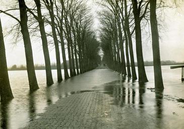 Keywords: De berichtgever van het Hbl. le Groningen schrijft d.d. 16 Januari: Half Groningen is heden uitgetrokken om de onafzienbare watervlakte, die zich in enkele dagen tijds heeft gevormd op een half uur gaans ten zuidwesten van de stad, in oogenschouw te nemen. Op den Paterswoldseweg was het den ganschen dag veel drukker dan in de Amsterdamsche Kalverstraat bij avond. Er was bijna geen voortkomen aan. Van den spoorweg tot bij het Witte Brugje, de plek waar het water ook den weg heeft overstroomd, schuifelde een enorme menschenmassa rechts en links, heen- en terugwaarts.