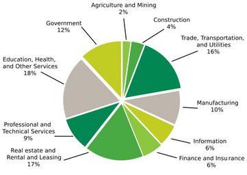 | Keywords: Gross Domestic Product of California 2008 (millions of current dollars).svg Gross Domestic Product of California 2008 millions of current dollars All Industries NAICS classification own Created with Adobe Illustrator ValidSVG Cite web Gross Domestic Product by State Bureau of Economic Analysis 2008 http //www bea gov/regional/gsp/ 2010-01-31 2010-01-31 Optigan13 Gross Domestic Product of California 2008 millions of current dollars NL svg wikitable - Industry Millions of current dollars Notes - Agriculture and Mining 43333 - Construction 67770 - Trade Transportation and Utilities 299645 Includes Wholesale trade and retail trade - Manufacturing 181134 - Information 112752 Includes Publishing including software Motion picture and sound recording industries Broadcasting and telecommunications - Finance and insurance 107587 - Real estate and rental and leasing 308737 - Professional and technical services 174627 - Education health and other services 334408 Management Administrative waste Educational Health care social assistance other services except gov't arts entertainment recreation accommodation and food services - Government 216764 Economy of California Economic pie charts |