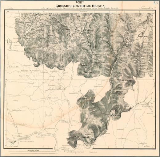 Keywords: Grossherzogtum Hessen 1832-1850 Karte 30.jpg Historische Karte des Großherzogtums Hessen von 1832 bis 1850 Im Maßstab 1 50 000 Blatt 30 Hirschhorn Mit Hirschhorn Mörlenbach Birkenau Neckarsteinach Beerfelden Weiher u a Orten žGroßherzogtum Hessen 1832-1850 “ 30 Hirschhorn in Historische Kartenwerke http //www lagis-hessen de/de/subjects/idrec/sn/hkw/id/83 1832 1850 Sec Lieut Becker Maps of the history of Hesse PD-old |