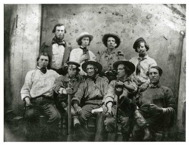 Keywords: gold rush goldrush miners california gold portrait daguerreotype group portrait groupportrait men people groupshot photo border monochrome blackandwhite black and white Repository: California Historical Society Digital object ID: CHS2010.238.tif Date: circa 1850s Format: Daguerreotype Preferred citation: [Group of miners], courtesy, California Historical Society, CHS2010.238.tif Repository: California Historical Society Digital object ID: CHS2010.238.tif Date: circa 1850s Format: Daguerreotype Preferred citation: [Group of miners], courtesy, California Historical Society, CHS2010.238.tif |