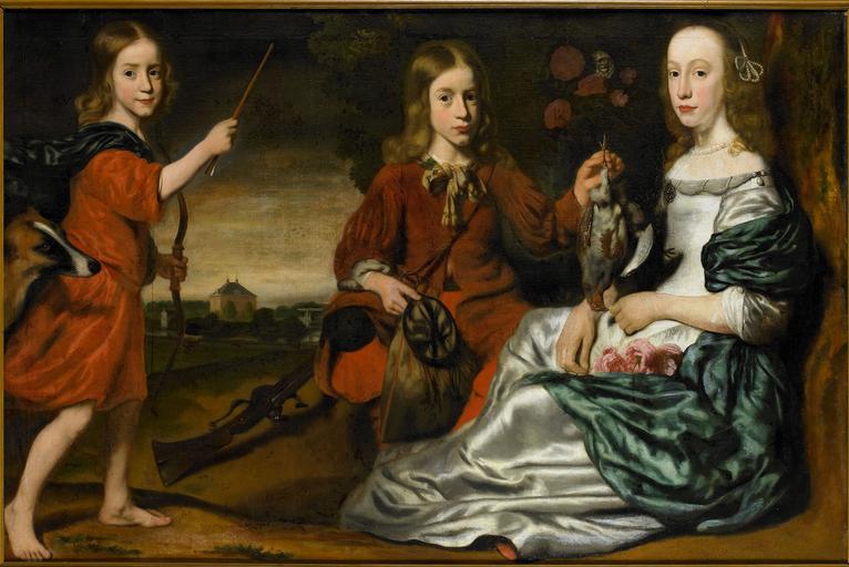 | Keywords: Group Portrait of a Young Woman and Two Boys, Dressed as Hunters, in a Landscape by a follower of Nicolaes Maes Gemeentemuseum Helmond.jpg nl Groepsportret van twee jongens en een jonge vrouw in een landschap oil on canvas cm 108 165 Helmond Gemeentemuseum Helmond Ex Rijksmuseum Amsterdam SK-A-2869 ~ 1670 Institution Rijksmuseum Amsterdam accession number SK-A-2869 place of creation place of discovery object history exhibition history credit line http //geheugenvannederland nl/ /nl/items/RIJK01 SK-A-2869 PD-Art Paintings by Nicolaes Maes Paintings in the Rijksmuseum Amsterdam |