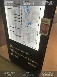 Keywords: How is it lower cost? If customers who saw the brochure first and missed seeing the e-Map signage would take the physical brochures rather than downloading the e-Map. By grouping the signage together with the brochures, management cut brochures cost by reducing the number of people taking the brochures as they would have had seen the e-Map signage. Side note: It be helpful to use a black background with white font for the information that you want to convey. Why? >> Would you focus more to the white light when u are in the darkness OR would u be distracted by multiple tiny black dots of information scattered around? retail melbourne australia