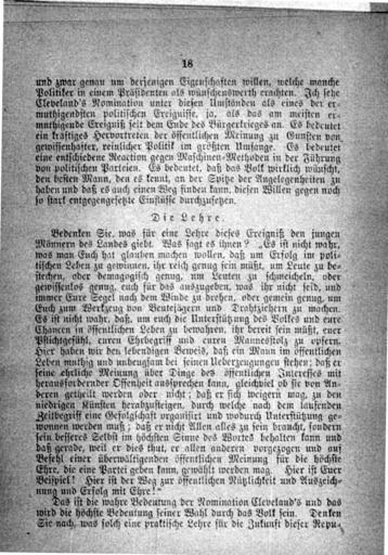 | Keywords: Grover-Cleveland-1892-de-p18.JPG en Image of page 18 of the pamphlet Carl Schurz an die Wähler ohne Unterschied der Partei Warum sie für Cleveland stimmen sollen Pamphlet courtesy of the Boston Public Library Carl Schurz 1892-09-08 PD-old Warum die Wähler für Cleveland stimmen sollen Seitebilder |