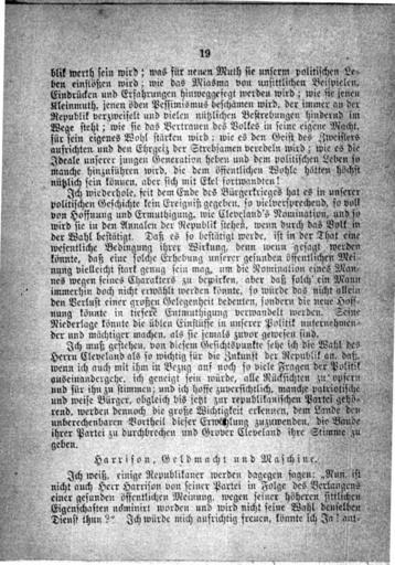 Keywords: Grover-Cleveland-1892-de-p19.JPG en Image of page 19 of the pamphlet Carl Schurz an die Wähler ohne Unterschied der Partei Warum sie für Cleveland stimmen sollen Pamphlet courtesy of the Boston Public Library Carl Schurz 1892-09-08 PD-old Warum die Wähler für Cleveland stimmen sollen Seitebilder |