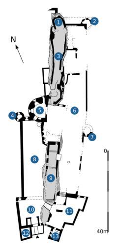 | Keywords: Grundriss Schoeneck.svg Grundriss der elsässischen Burg Schöneck bei Dambach own <br /> Vorlagen u a Charles-Laurent Salch Nouveau Dictionnire des Châteaux Forts d ™Alsace Alsatia 1991 ISBN 2-7032-0193-1 p 292; Thomas Biller Bernhard Metz Der spätromanische Burgenbau im Elsaß 1200 “1250 München/Berlin Deutscher Kunstverlag 2007 ISBN 978-3-422-06635-9 p 405 Models i a Charles-Laurent Salch Nouveau Dictionnire des Châteaux Forts d ™Alsace Alsatia 1991 ISBN 2-7032-0193-1 p 292; Thomas Biller Bernhard Metz Der spätromanische Burgenbau im Elsaß 1200 “1250 München/Berlin Deutscher Kunstverlag 2007 ISBN 978-3-422-06635-9 p 405 2013-01-21 Sir Gawain - 1 Bergfried 2 Polygonaler Eckturm - 3 Nördliche Oberburg 4 Runder Eckturm - 5 Geschützturm 6 Östliche Unterburg - 7 Halbrunder Flankierungsturm 8 Westliche Unterburg - 9 Südliche Oberburg 10 Westlicher Zwinger - 11 Östliche Zwinger 12 Westlicher Flankierungsturm - 13 Östlicher Flankierungsturm Château de SchÅ“neck Plans of castles in Alsace |