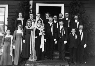 Keywords: Gruppbild vid bröllop. Lima, Dalarna. Brudparet Lindberg m bröllopsfölje - Nordiska Museet - NMA.0043720.jpg Artwork Hans Per Persson 1876-1959 sv Gruppbild vid bröllop Lima Dalarna Brudparet Lindberg m bröllopsfölje främre raden Brita Johansson Utgårds-Sara en syster till brudgummen Emma o Janne Lindberg Bakre raden Erika Halvarsson Sofia Holmström Maria Halvarsson Rabb-Johan brudens far Olle på högen Bergslags - Matsson Gruppbild vid bröllop Lima Dalarna Brudparet Lindberg m bröllopsfölje främre raden Brita Johansson Utgårds-Sara en syster till brudgummen Emma o Janne Lindberg Bakre raden Erika Halvarsson Sofia Holmström Maria Halvarsson Rabb-Johan brudens far Olle på högen Bergslags - Matsson <br /> Ämnesord Livets högtider Bröllop / Vigsel photograph Institution Nordiska museet object history credit line accession number NMA 0043720 Nordiska museet cooperation project PD-Old Images from Nordiska museet NMA 0043720 Images from Nordiska museet/check NMA 0043720 Black and white photographs of marriage Marriage in Sweden Group photographs Group portraits with 16 persons |