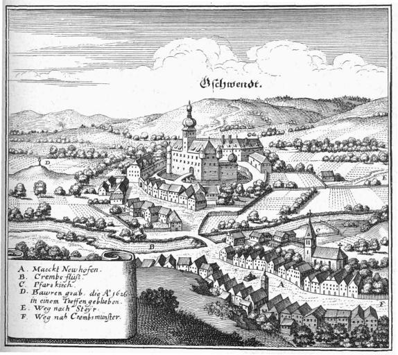Keywords: Gschwendt-neu.jpg de Schloss Gschwendt nach einem Stich von Matthaeus Merian 1656 Topographia provinciarum Austriacarum Austriae Styriae Carinthiae Carniolae Tyrolis etc Matthaeus Merian 1656 PD-old-100 Engravings of Topographia Austriacarum Austria in art by Matthäus Merian Schloss Gschwendt Engravings of castles in Upper Austria |