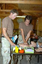 | Keywords: GTMO Troopers Unite During CLS Training DVIDS205721.jpg en Army Pvt Peter Sutton assigned to Joint Task Force Guantanamo's Joint Detention Group practices a venipuncture on a medical model as Army Spc Sasha Sanders observes his technique during combat lifesaver training Sept 10 Service members from JTF Guantanamo participate in the CLS training to maintain first aid techniques for mission readiness JTF Guantanamo conducts safe humane legal and transparent care and custody of detainees including those convicted by military commission and those ordered released by a court The JTF conducts intelligence collection analysis and dissemination for the protection of detainees and personnel working in JTF Guantanamo facilities and in support of the War on Terror JTF Guantanamo provides support to the Office of Military Commissions to law enforcement and to war crimes investigations The JTF conducts planning for and on order responds to Caribbean mass migration operations 2009-09-10 Petty Officer 1st Class Katherine Hofman https //www dvidshub net/image/205721 090910-N-+++++-035 2009-09-21 16 02 GUANTANAMO BAY CU PD-USGov-Military-Navy Joint Task Force Guantanamo Guantanamo Bay Images from DoD uploaded by Fæ |