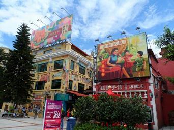 Keywords: guanyejie macau blue sky street city scene