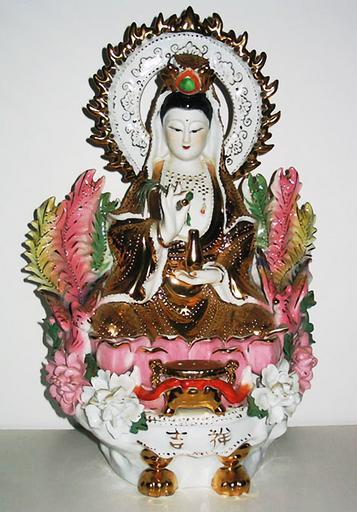 | Keywords: quan yin quanyin buddha roger sadler rogersadler plant bouquet flower indoor surreal drawing Guanyin is an East Asian deity of mercy, and a bodhisattva associated with compassion as venerated by Mahayana Buddhists. The name Guanyin is short for Guanshiyin, which means "Perceiving the Sounds (or Cries) of the World". She[A] is also sometimes referred to as Guanyin Bodhisattva (Chinese: 觀音菩薩).[1] Some Buddhists believe that when one of their adherents departs from this world, they are placed by Guanyin in the heart of a lotus, and then sent to the western pure land of Sukhāvatī.[2] It is generally accepted among East Asian adherents that Guanyin originated as the Sanskrit Avalokiteśvara. Commonly known in English as the Mercy Goddess or Goddess of Mercy,[3] Guanyin is also revered by Taoists as an immortal. Guanyin is an East Asian deity of mercy, and a bodhisattva associated with compassion as venerated by Mahayana Buddhists. The name Guanyin is short for Guanshiyin, which means "Perceiving the Sounds (or Cries) of the World". She[A] is also sometimes referred to as Guanyin Bodhisattva (Chinese: 觀音菩薩).[1] Some Buddhists believe that when one of their adherents departs from this world, they are placed by Guanyin in the heart of a lotus, and then sent to the western pure land of Sukhāvatī.[2] It is generally accepted among East Asian adherents that Guanyin originated as the Sanskrit Avalokiteśvara. Commonly known in English as the Mercy Goddess or Goddess of Mercy,[3] Guanyin is also revered by Taoists as an immortal. |
