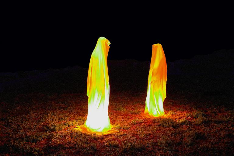 Keywords: guardians of time phenomena statue contemporary arts modern art manfred kielnhofer statues figures illuminated night yellow