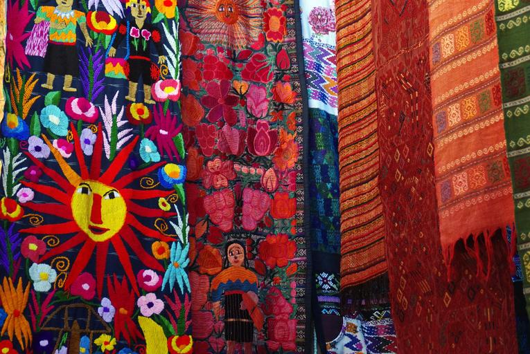 Keywords: guatemela chichicastenango market paintings multi-coloured fabrics ethnic