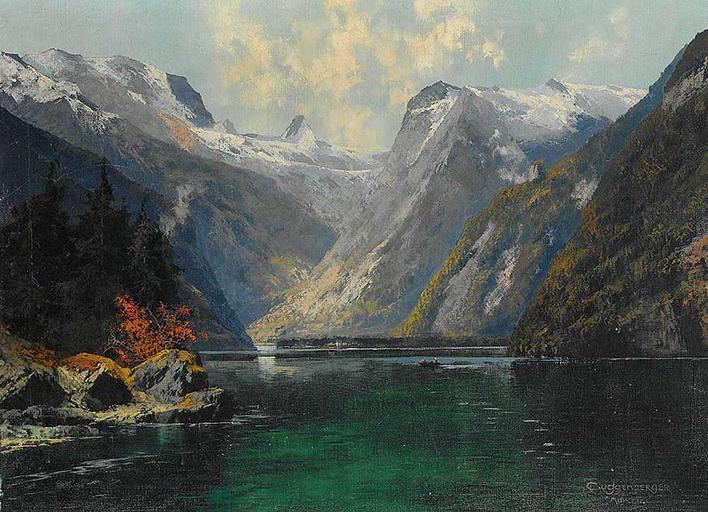 | Keywords: Guggenberger Königsee Watzmann.jpg Theodor Otto Michael Guggenberger 1866-1929 Blick über den Königssee auf St Bartholomä und das Watzmann-Massiv Oil on canvas 59 x 80 cm PD-Art Source http //www zeller de/ Images from Auktionshaus Zeller Paintings of the Königssee Artworks missing infobox template |